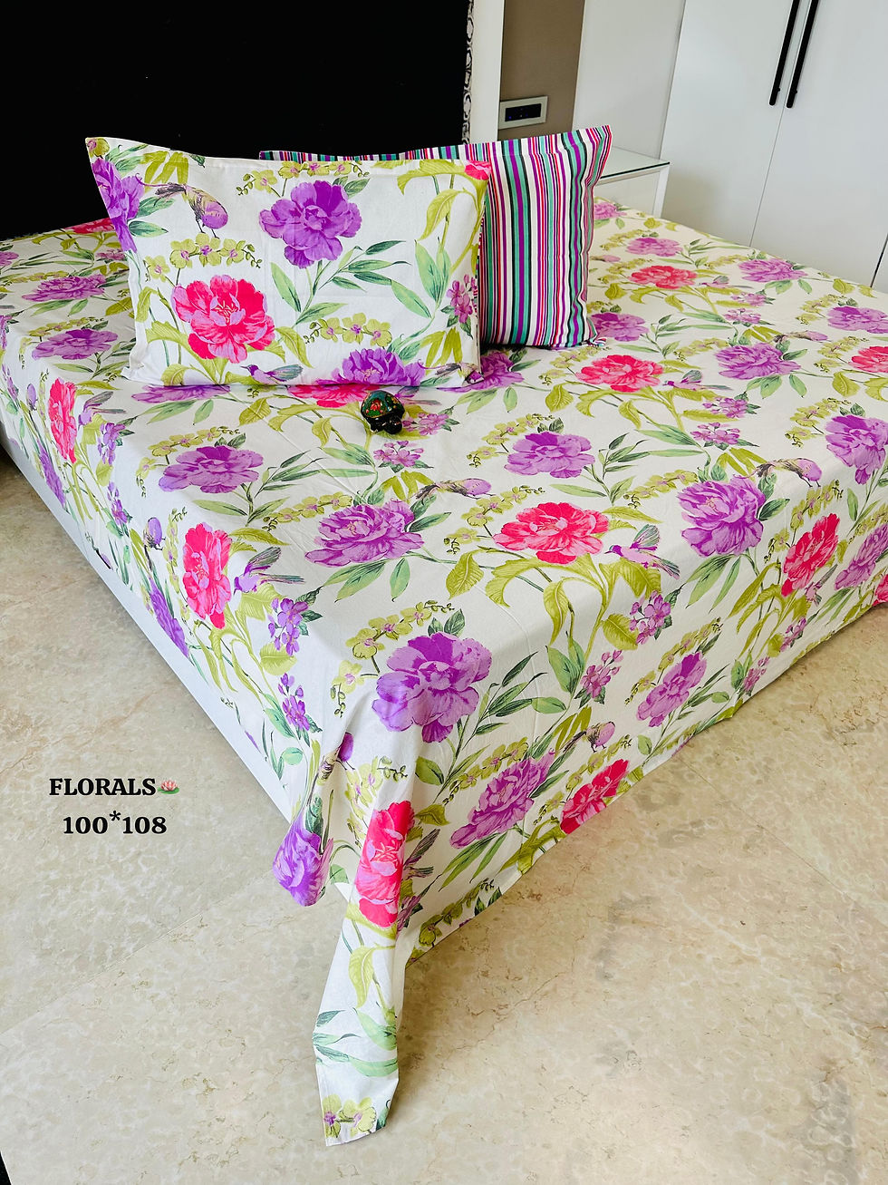 THE FLORALS - ULTRA PREMIUM SUPER KING SIZE BEDSHEETS ( 100*108 INCHES)